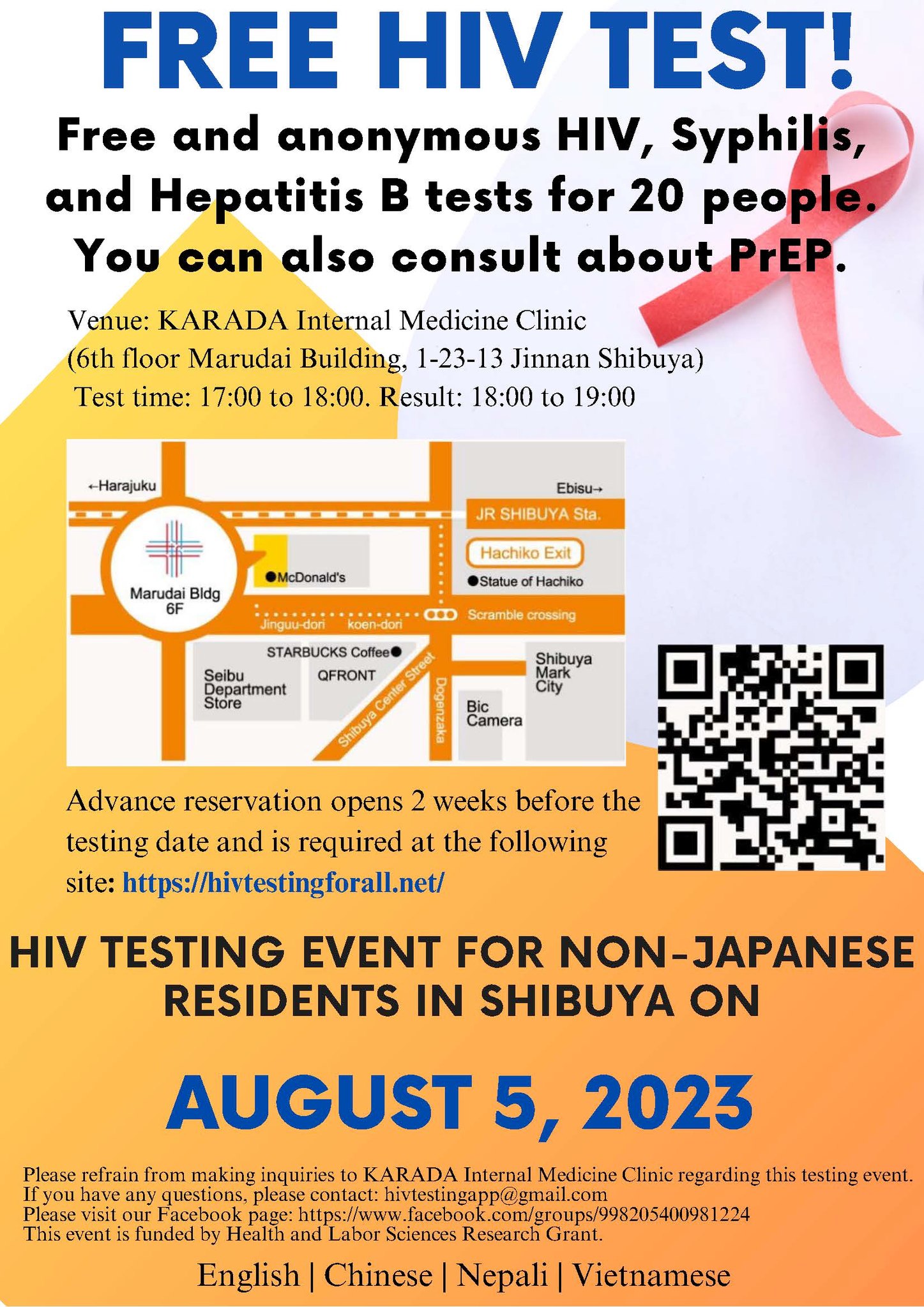 <東京、HIV・梅毒の検査の情報>