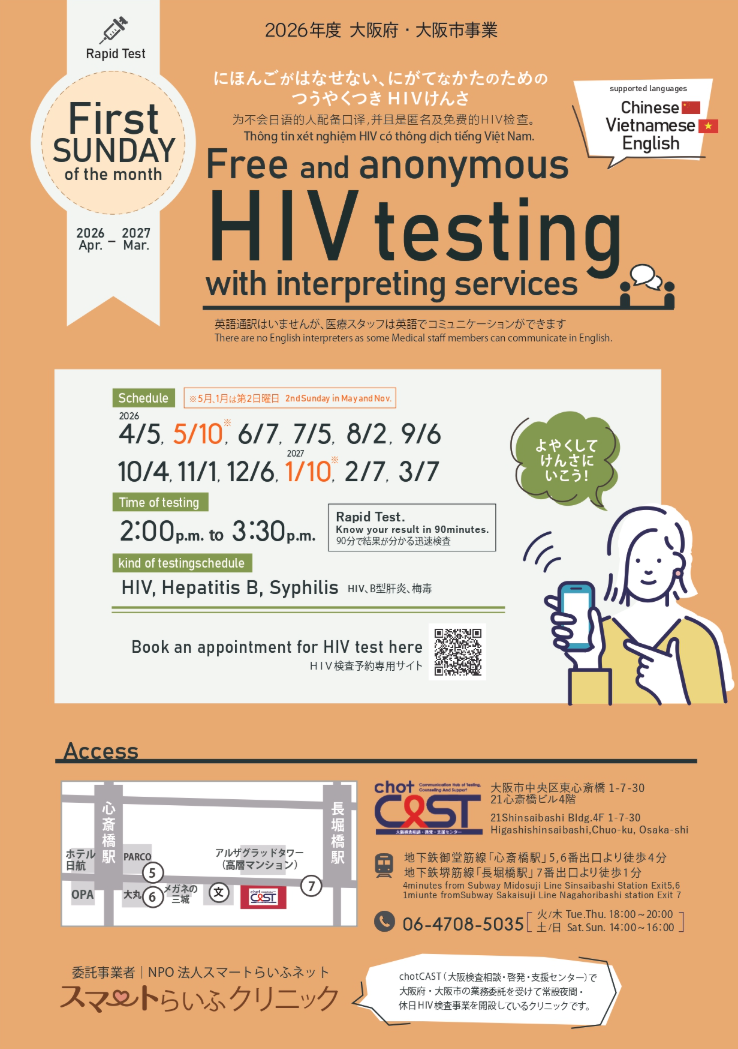 <大阪、HIV・梅毒の検査の情報>