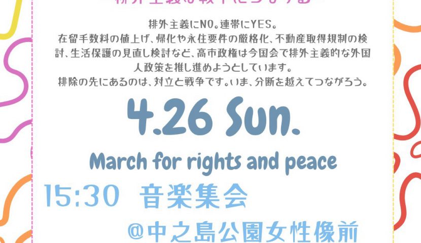 在留手数料の値上げ、帰化や永住要件の厳格化、不動産取得規制の検討、生活保護の見直し検討など、高市政権は今国会で排外主義的な外国人政策を推し進めようとしています。