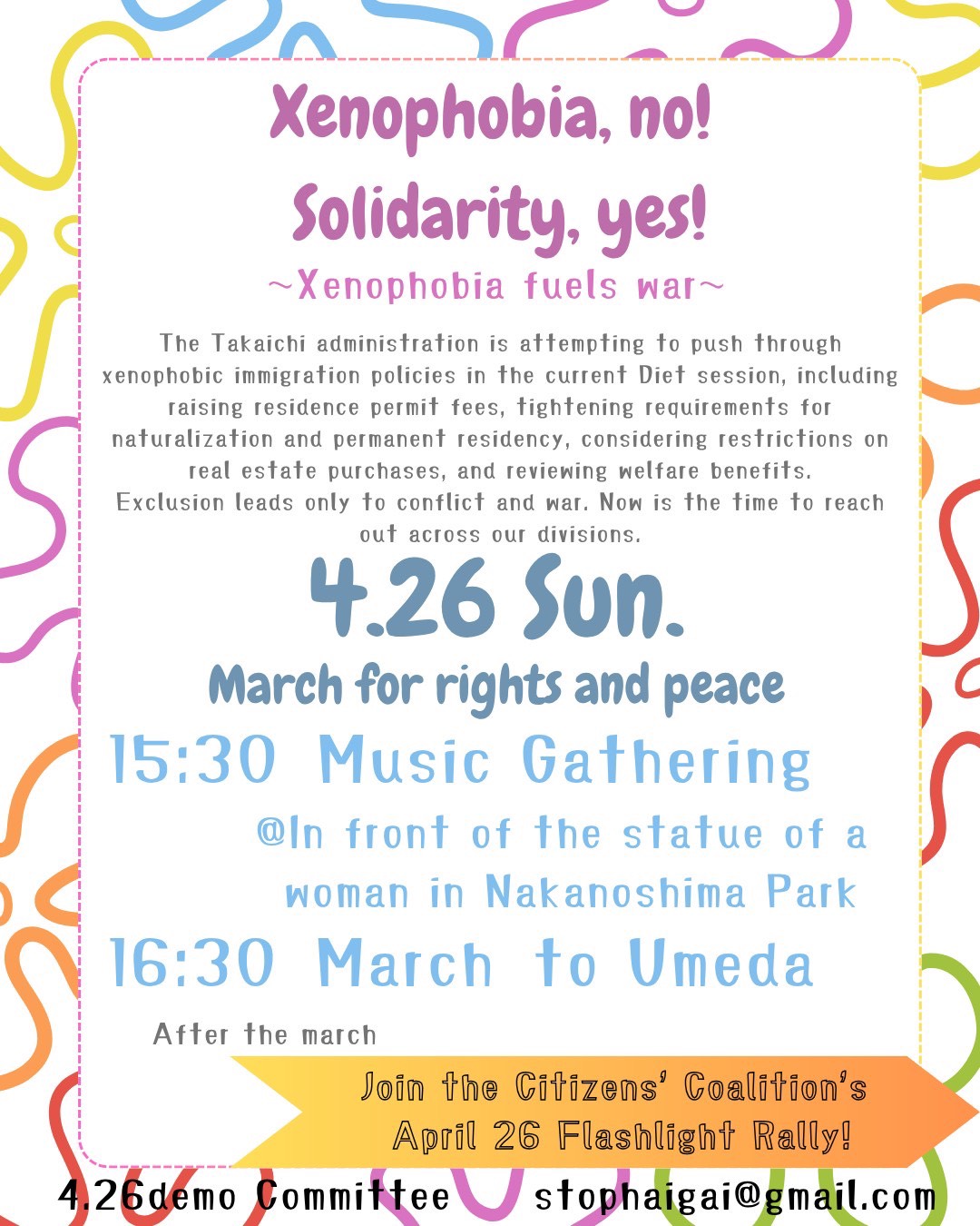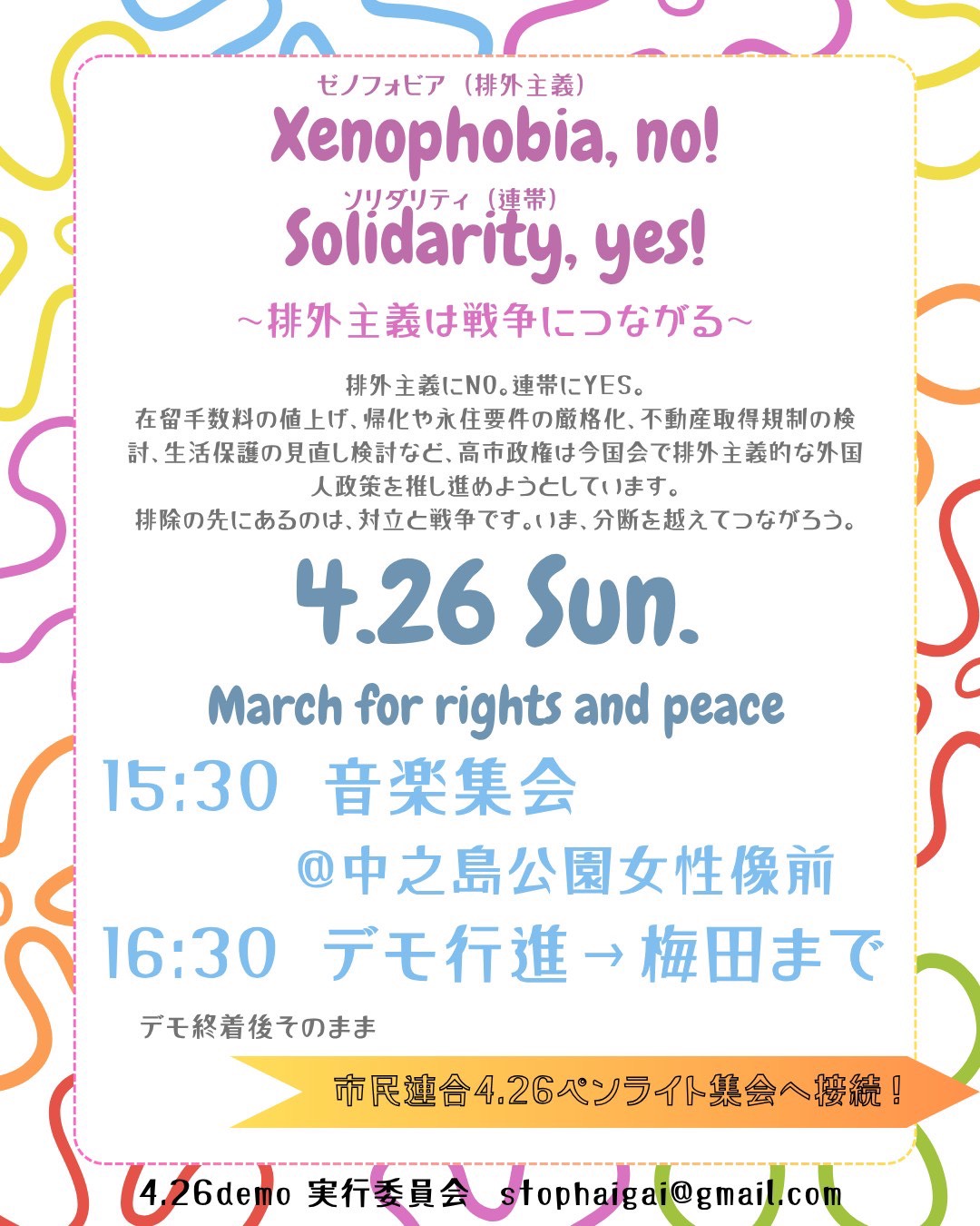 お問い合わせ等は4.26demo実行委員会実行委員会までお願いします。