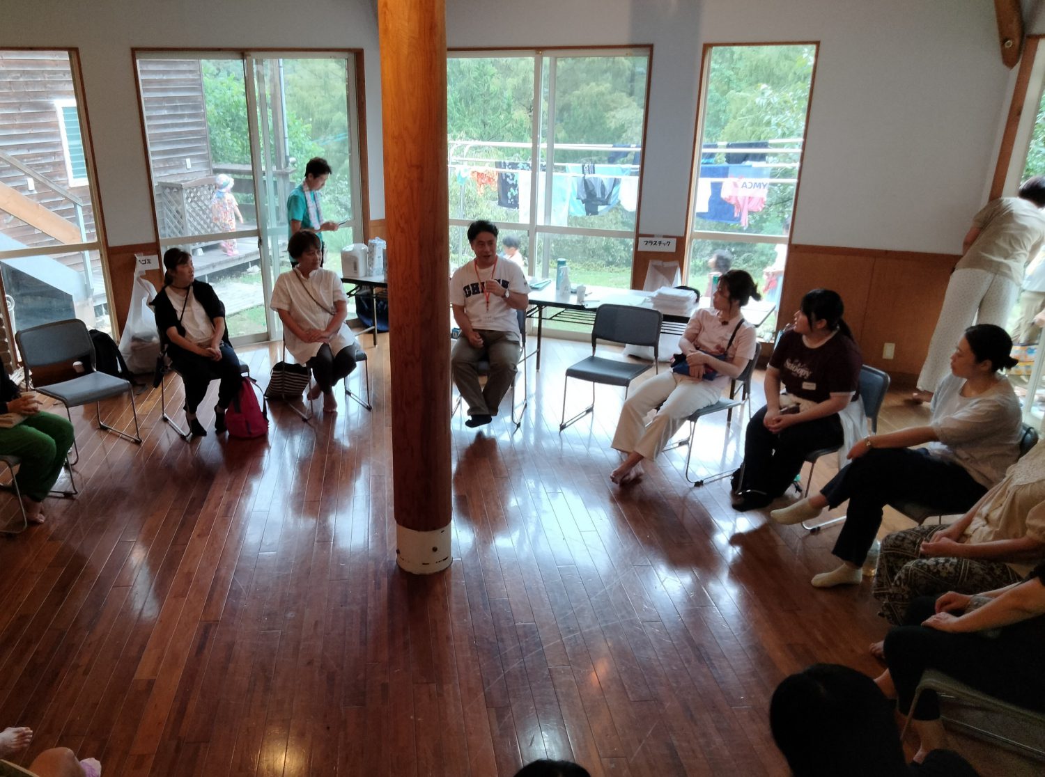 今回の多文化キャンプは2025年9月13日(土)・14日(日)に開催しました。参加したHIV陽性女性は11名(うち外国籍3名)と例年より少ない人数となりましたが、子どもは3歳~15歳までの13名、医療従事者は医師、看護師、薬剤師、医療ソーシャルワーカー合わせて6名、CHARMスタッフ3名の合計33名でした。近年、多文化キャンプの活動に関心を寄せてくださる医療従事者の方々が増えてきており、4名の方に初めてご参加いただきました。一泊二日を共に過ごしますので、女性たちはこの間いつでも医療従事者に相談できる、というのがこのキャンプの特徴です。さらに今回は座談会を開き、女性たちが出し合う日々の疑問に医療従事者の方々に回答をいただき、知識や情報をシェアする機会を持ちました。活発な質疑応答の中に女性たちの経験談なども加わるのですが、これは安心して語れる場であるからこそです。女性たちが「ひとりではない」と思えるのは、こうやって過ごすひと時なのだな、と改めてこのキャンプの場の力を感じた時間でした。女性たちからは「ここでなければ語れないことがある貴重な場」「同じ病気の方々と話せることが喜びであり、心強さを感じる」「疑問や思いをシェアし、医療者と話せる機会もあって充実した時間だった」等の感想をいただきました。